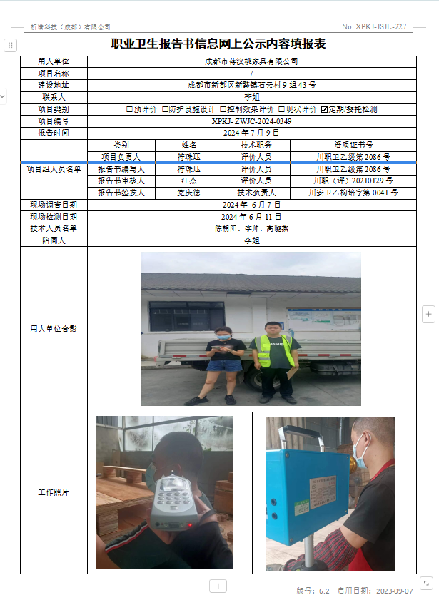 成都市蒋汶桃家具有限公司定期检测