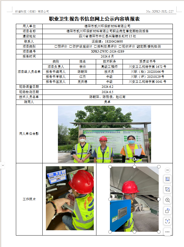 德阳市凯州环保新材料有限公司定期检测