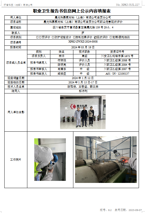 晨光科慕氟材料(上海)有限公司自贡分公司职业危害现状评价