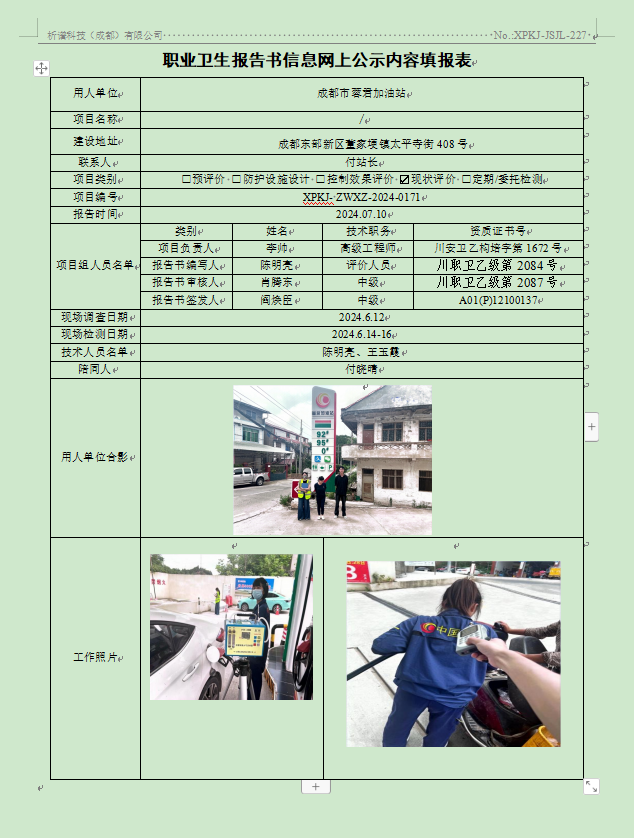 成都市蓉君加油站现状评价