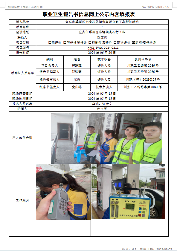 宜宾市翠屏区支清石化销售有限公司王家桥加油站定期检测