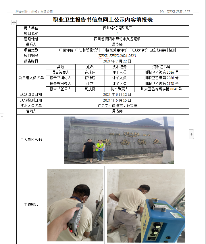 四川绵竹瑞西酒厂定期检测