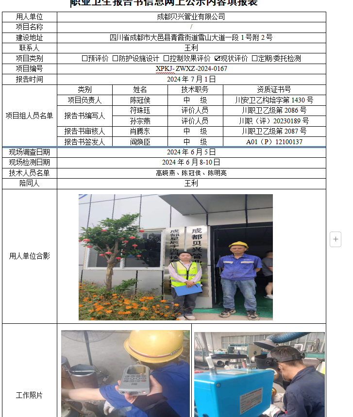 成都贝兴管业有限公司现状评价