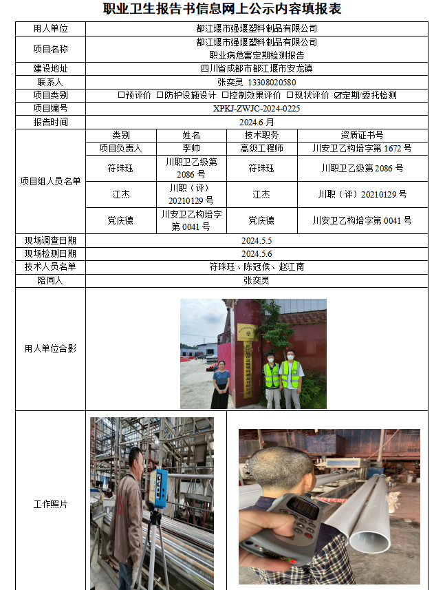 都江堰市强堰塑料制品有限公司定期检测