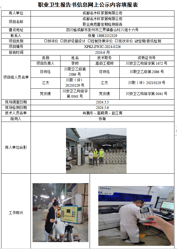 成都名木轩家居有限公司定期检测