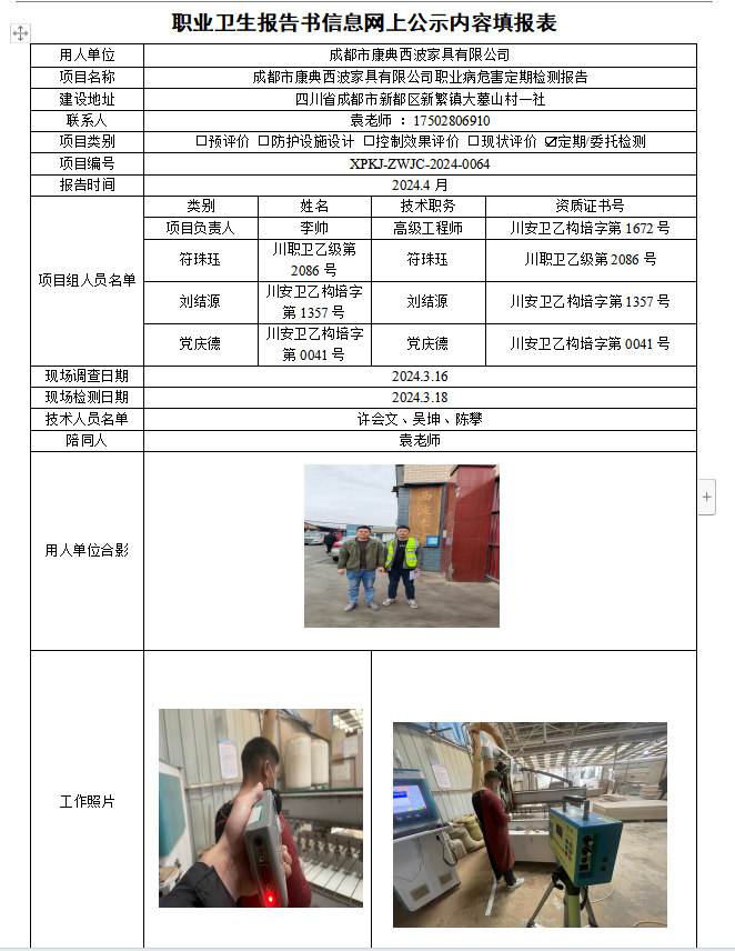 新都区新繁镇友富刨花板厂职业病危害因素定期检测