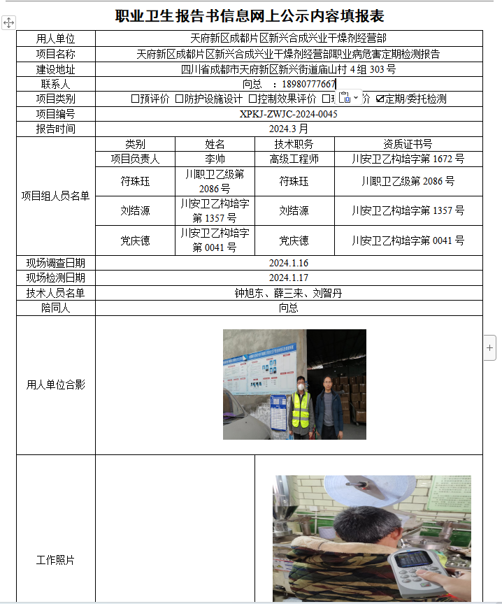 天府新区成都片区新兴合成兴业干燥剂经营部定期检测