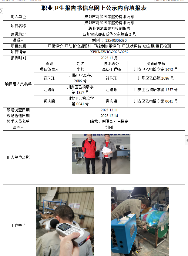 成都市奇和汽车服务有限公司定期检测