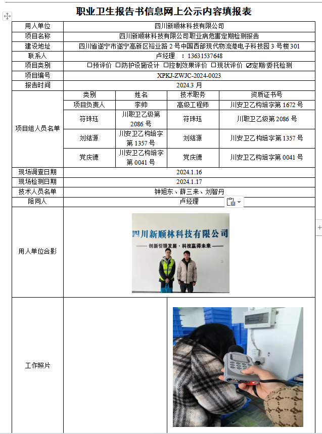 四川省江油市金能经贸有限公司职业病危害因素定期检测