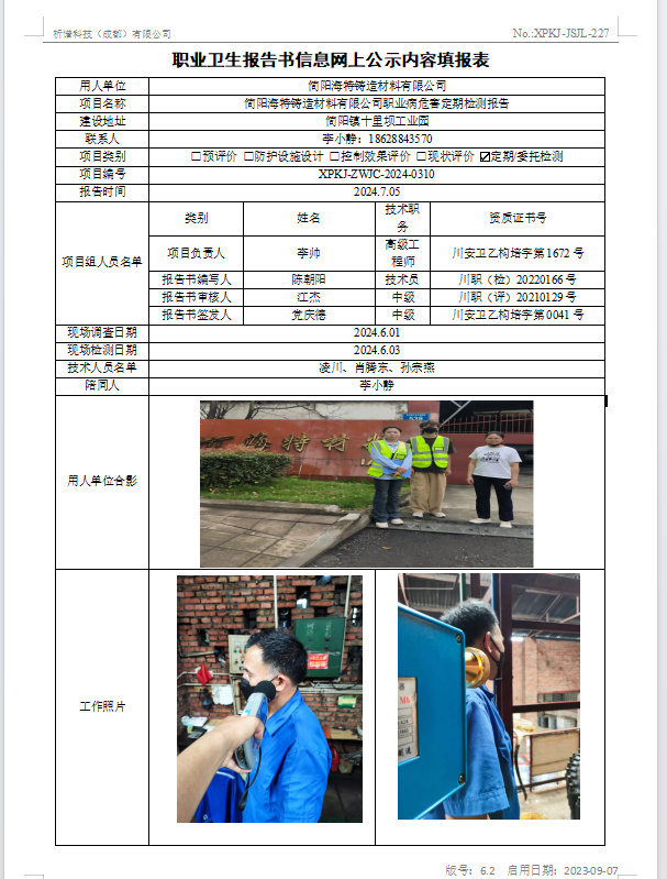 宜宾市常翼汽车零部件有限责任公司定期检测