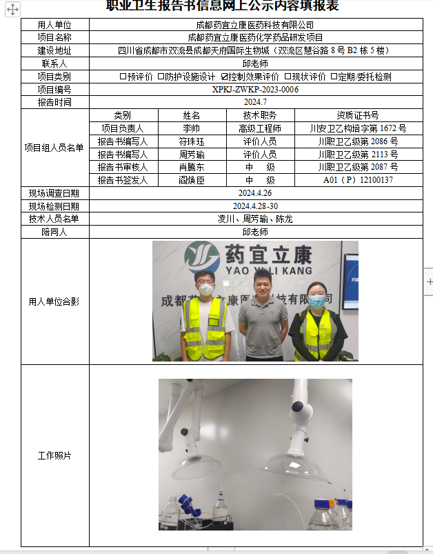 成都药宜立康医药科技有限公司控制效果评价