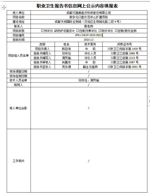 四川龙创新材料科技有限公司职业病危害因素定期检测