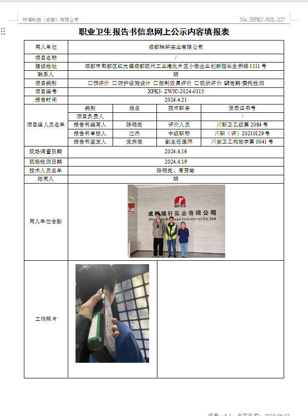 宜宾市纳实建材有限公司职业病危害因素定期检测