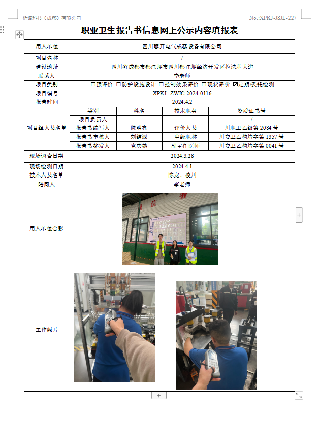 四川蓉开电气成套设备有限公司定期检测