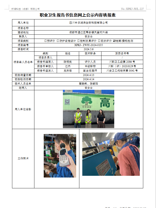 四川中农润泽生物科技有限公司定期检测