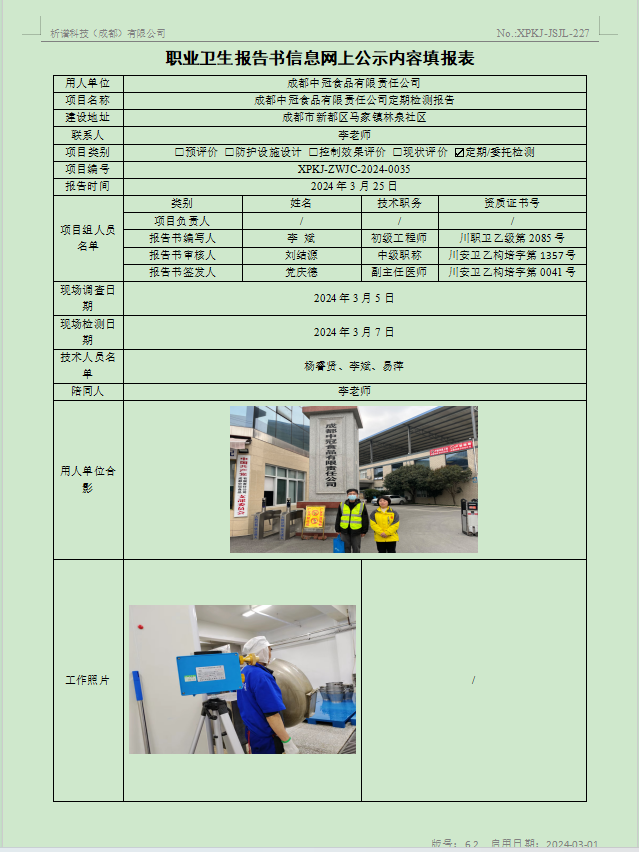 成都天香雨露鞋业有限公司职业病危害因素定期检测