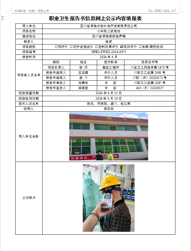 普格县恒裕水电开发有限公司小兴场二级电站现状评价