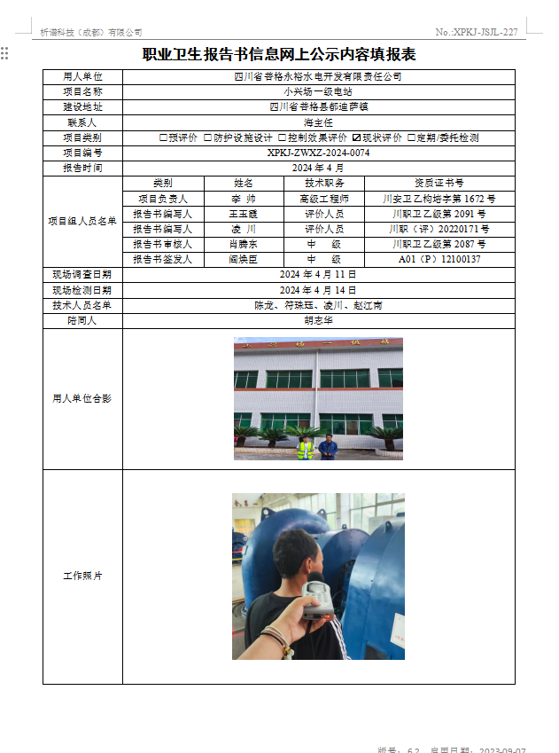 普格县恒裕水电开发有限公司小兴场一级电站现状评价
