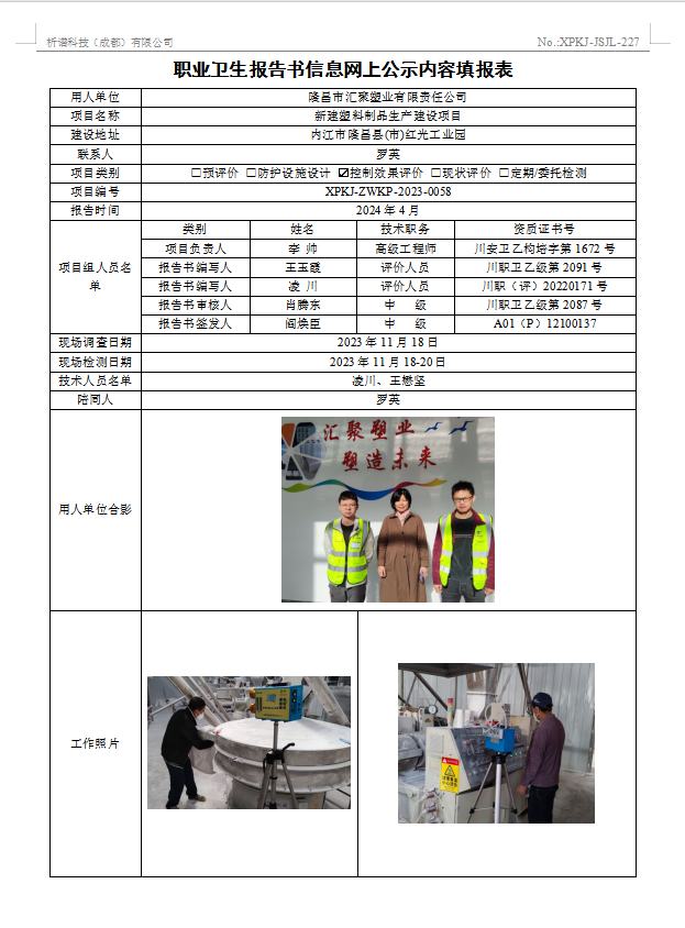 隆昌市汇聚塑业有限责任公司控制效果评价