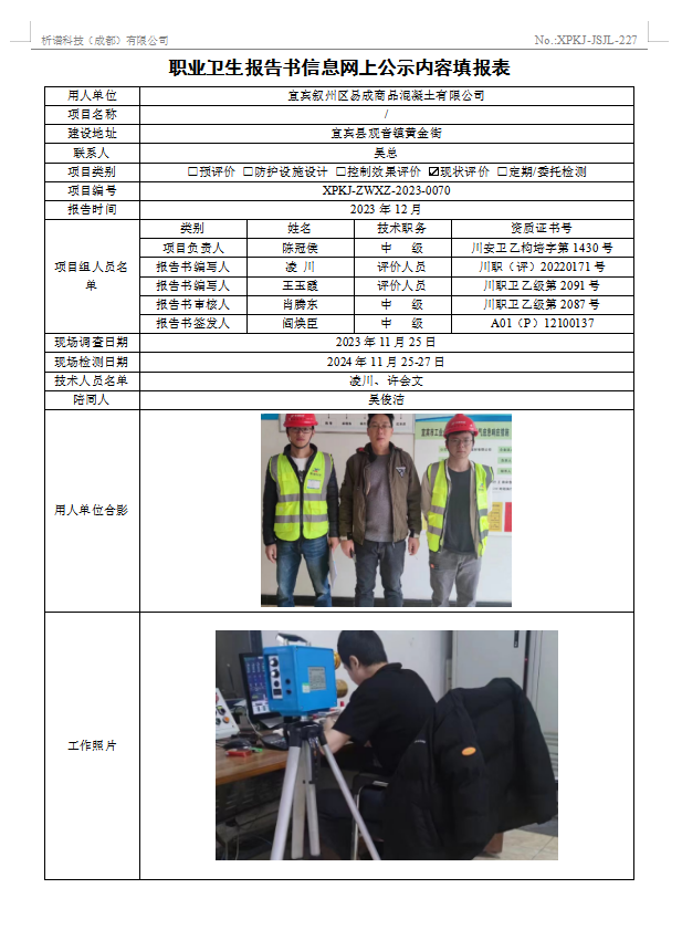 四川硕顺新材料科技有限公司职业病危害定期检测