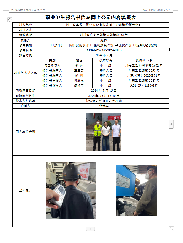 四川省华蓥山煤业股份有限公司广安前锋精煤分公司现状评价
