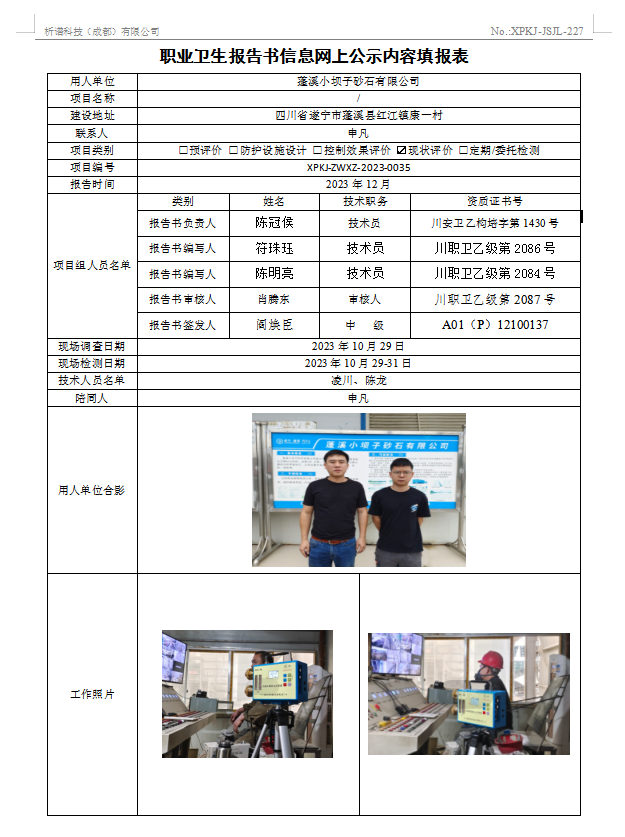 彭州建光科技有限公司定期检测