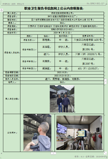 成都市大林合力新型墙体材料厂职业病危害因素定期检测