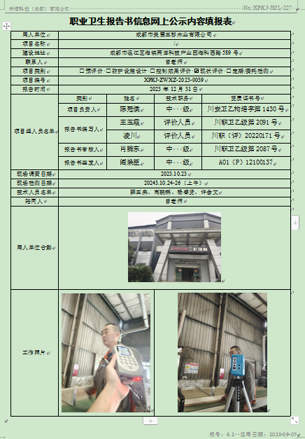 成都市美康三杉木业有限公司现状评价