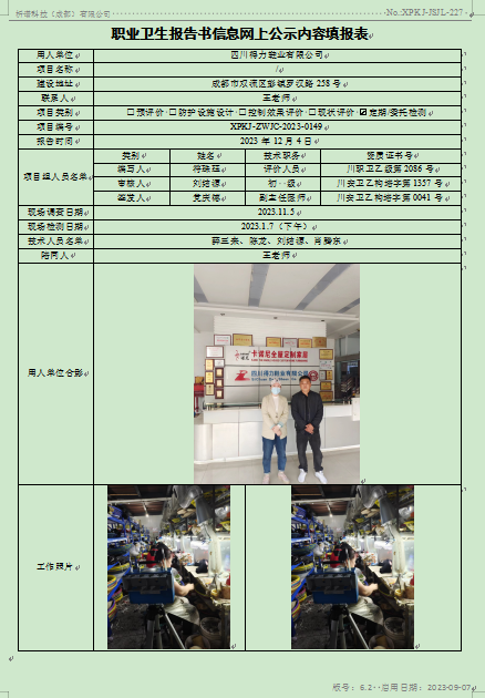 四川达园新材料科技有限公司职业病危害定期检测报告