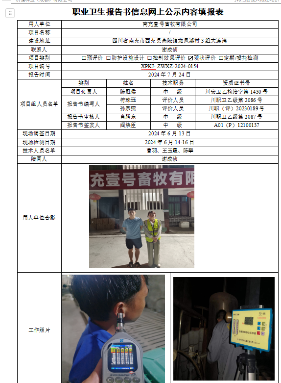 南充壹号畜牧有限公司现状评价