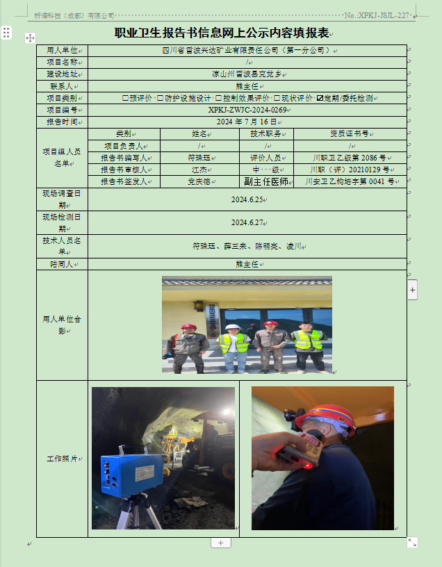 四川省雷波兴达矿业有限责任公司(第一分公司)定定期检测