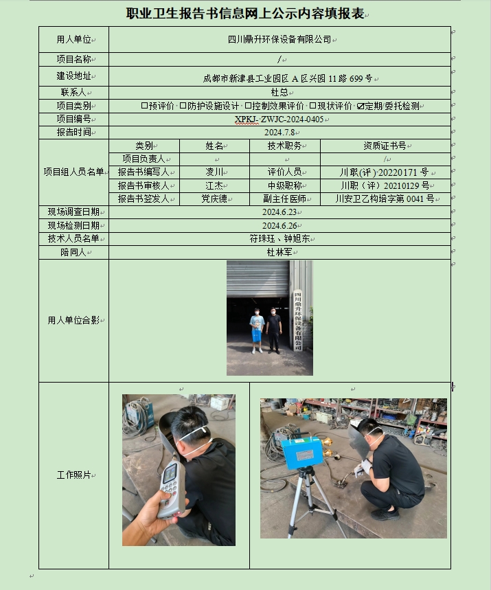 四川鼎升环保设备有限公司定期检测
