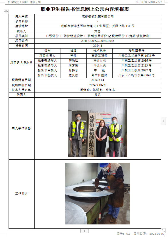 四川海川新材料科技有限公司职业病危害因素控制效果评价