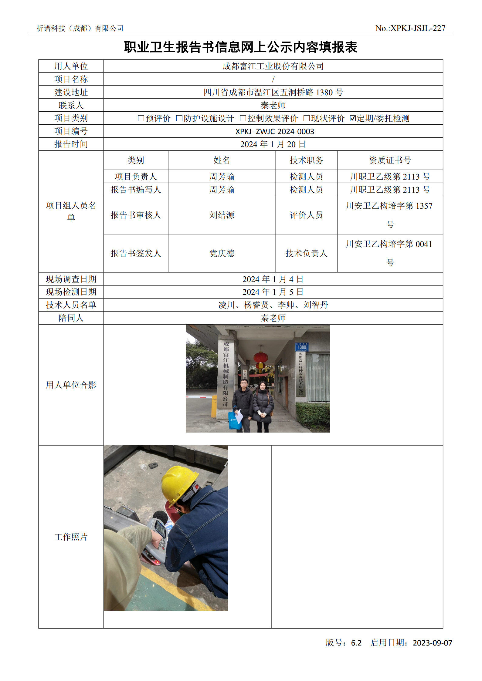 成都富江工业股份有限公司定期检测