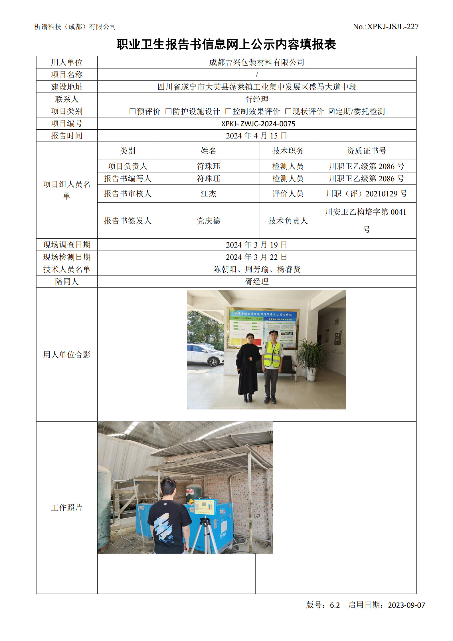 宜宾市纳实建材有限公司职业病危害因素定期检测