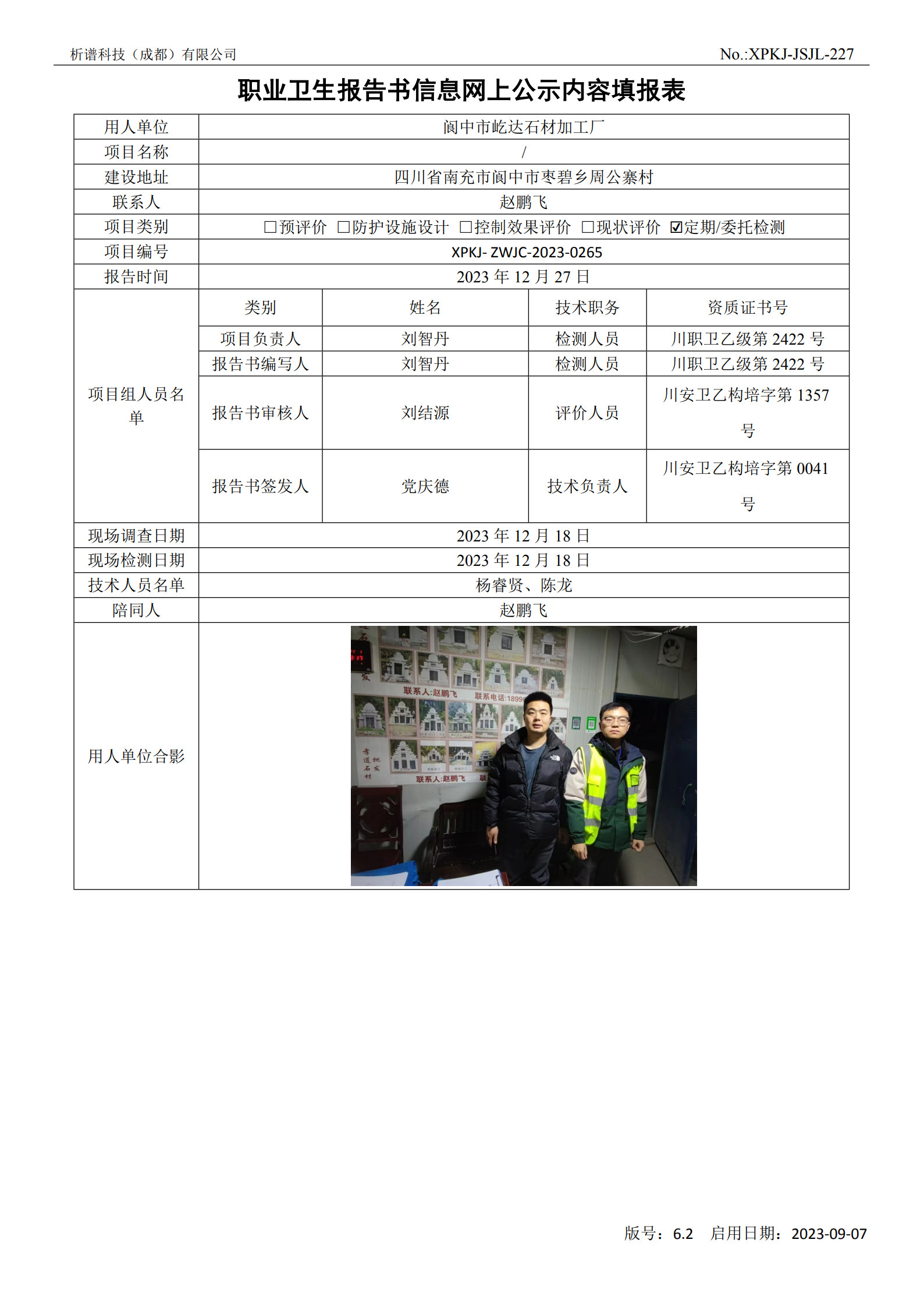 阆中市诚信石材经营部定期检测