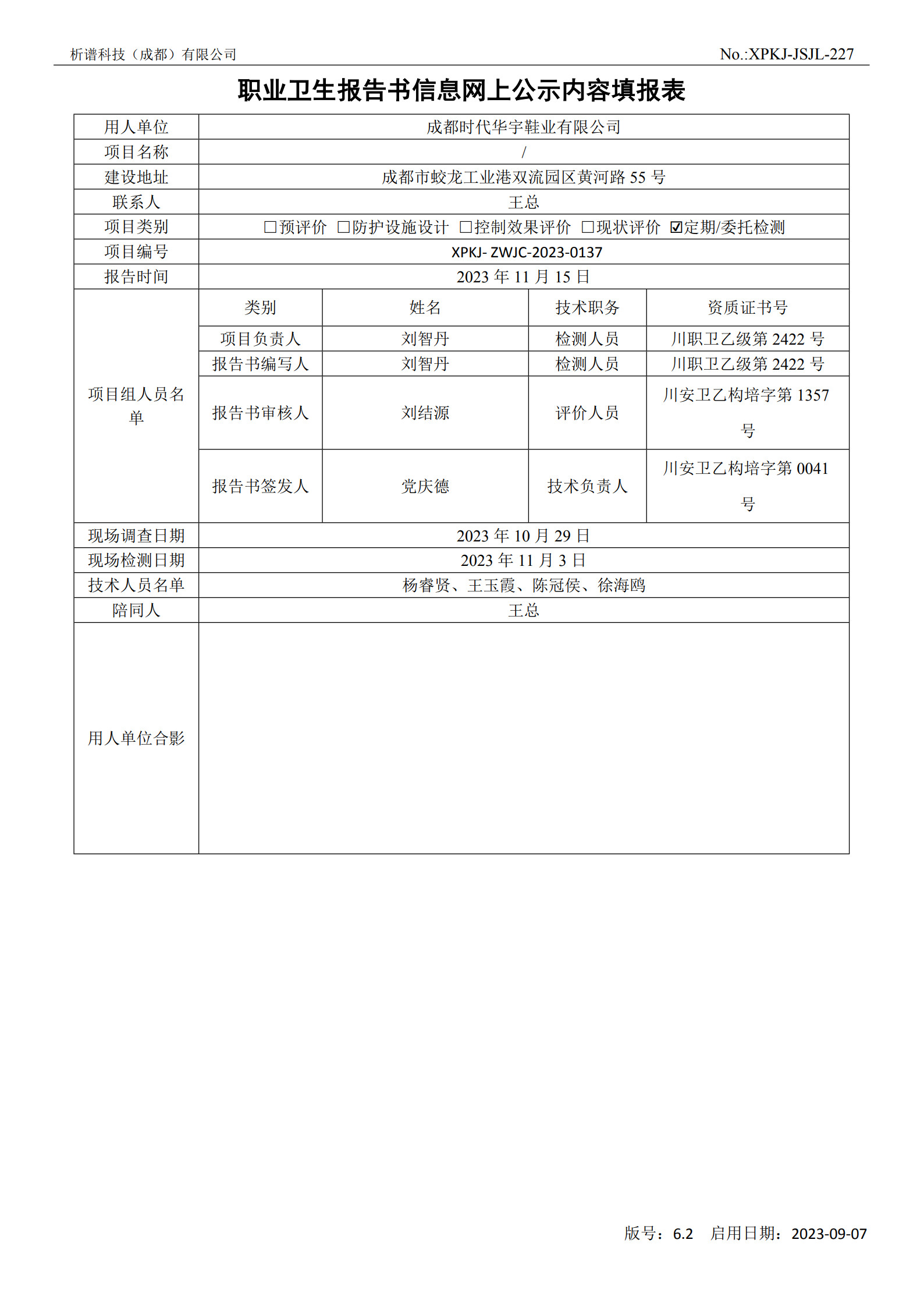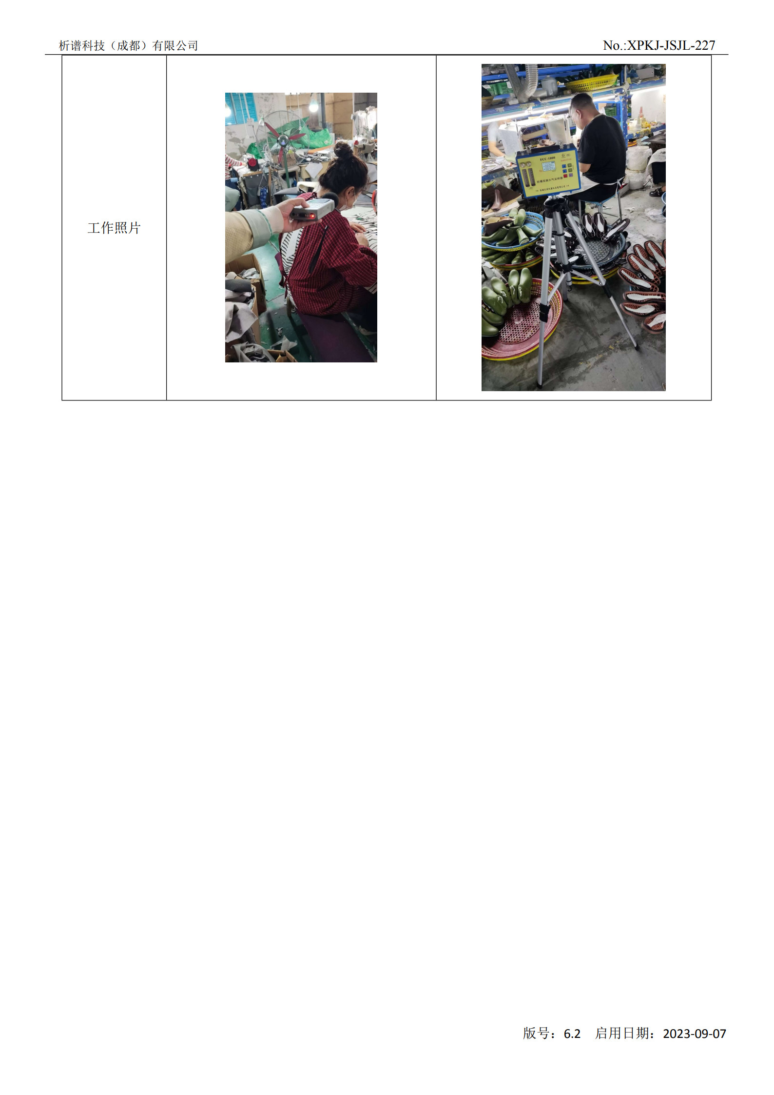 成都时代华宇鞋业有限公司定期检测