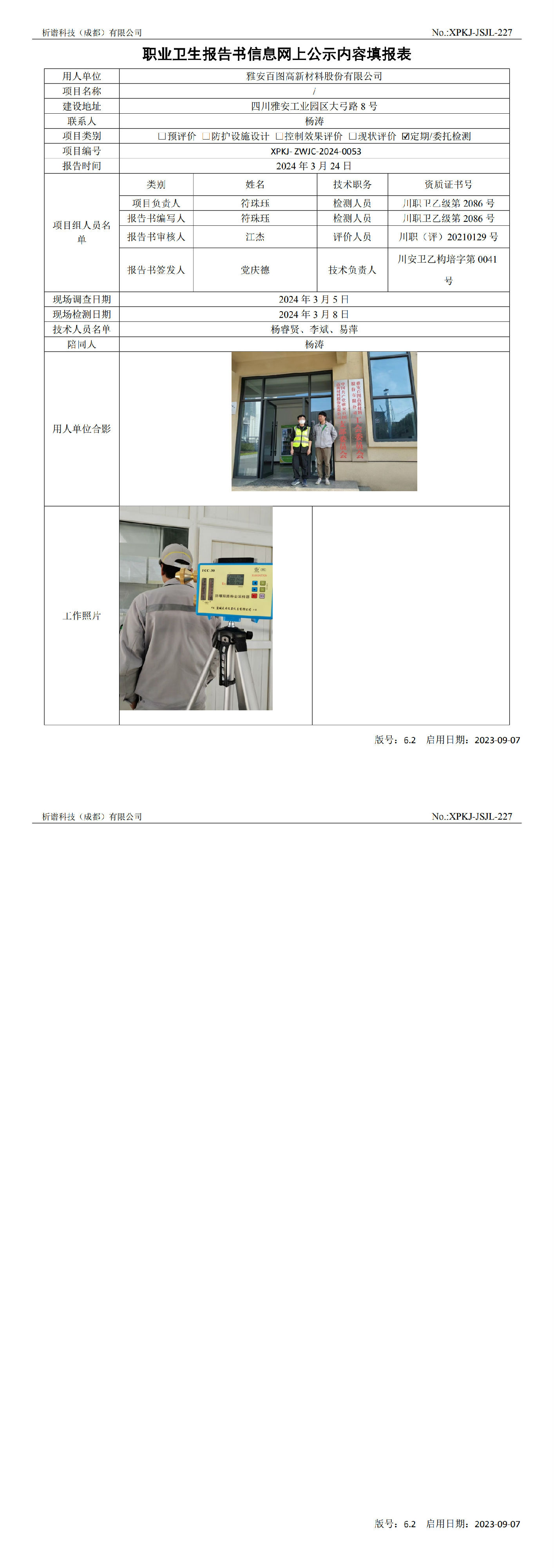 成都市大林合力新型墙体材料厂职业病危害因素定期检测