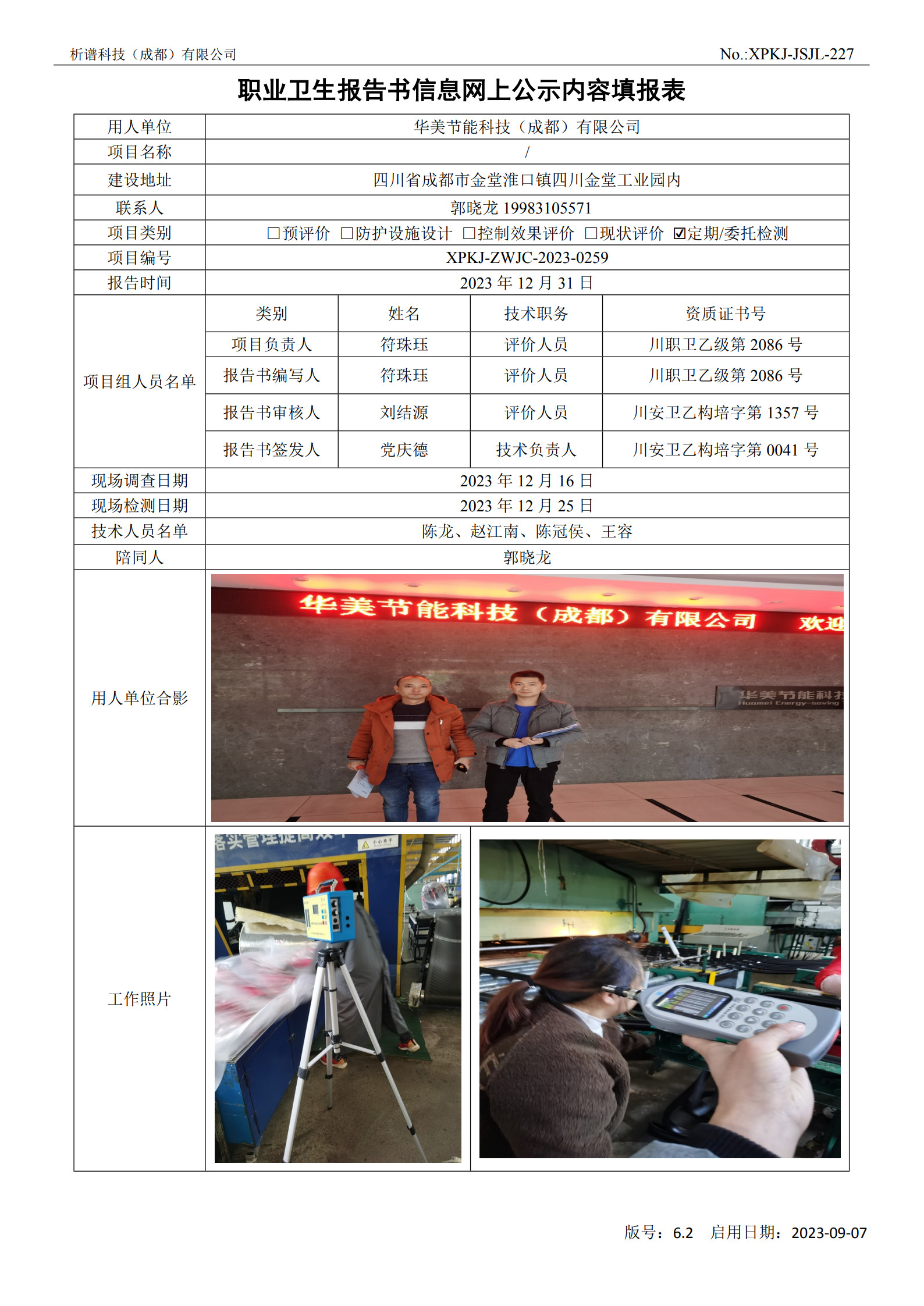 华美节能科技(成都)有限公司定期检测