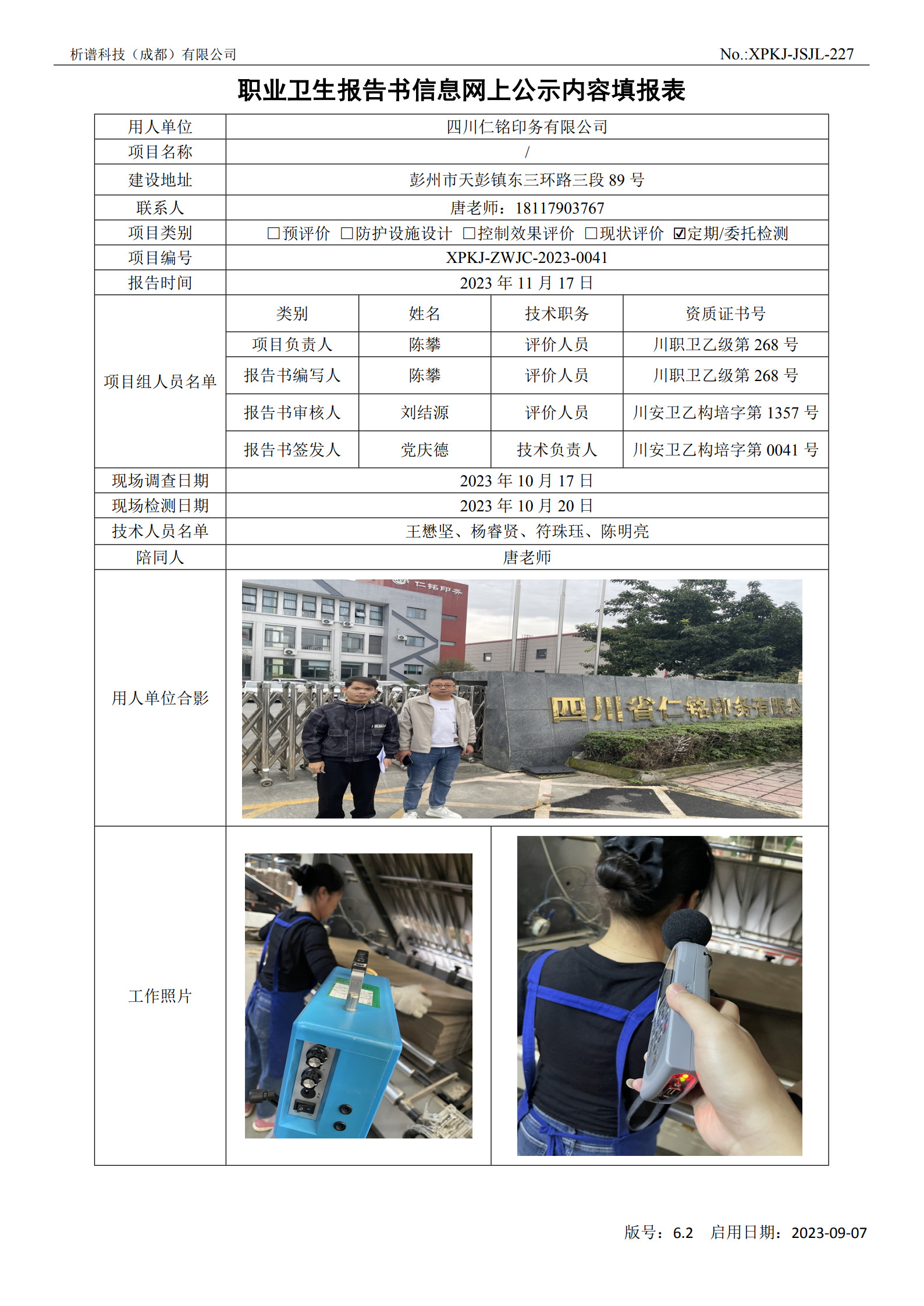 四川省仁铭印务有限公司定期检测