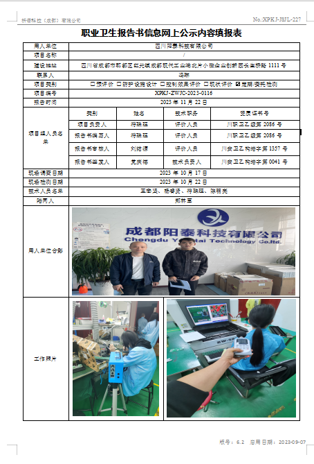 成都阳泰科技有限公司定期检测