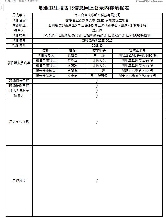 生物智谷(成都)科技有限公司预评价检测