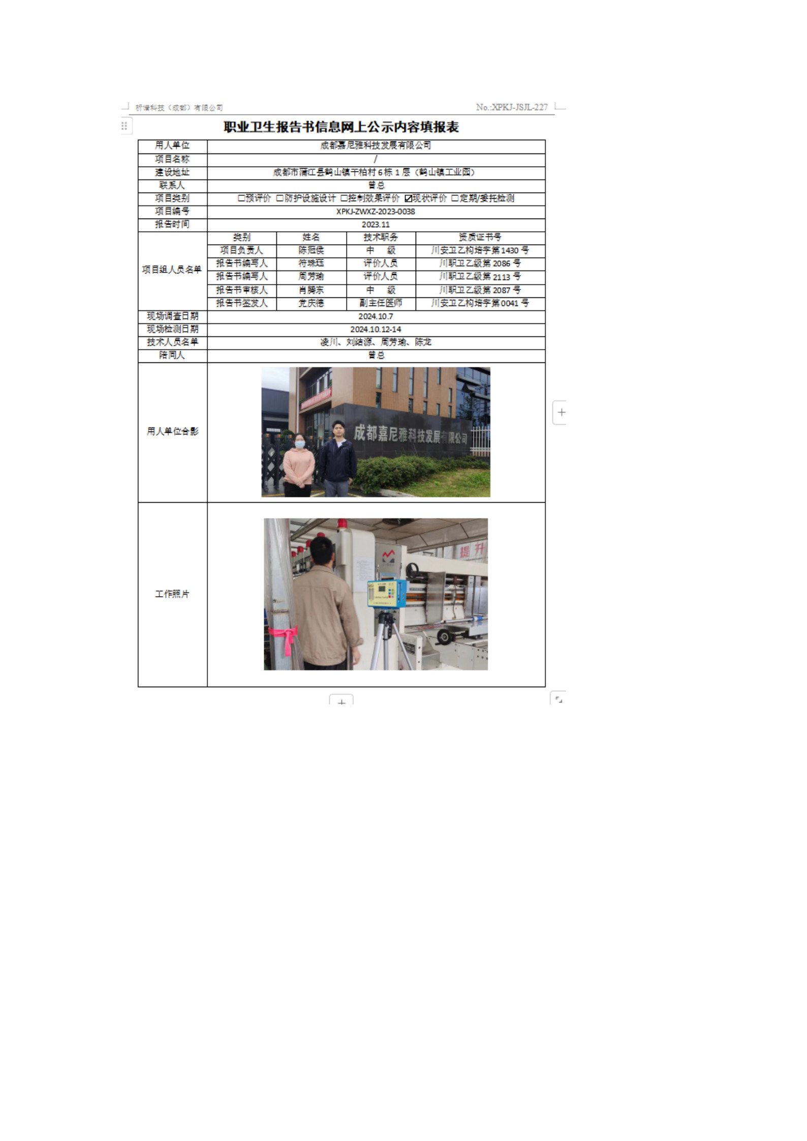 四川硕顺新材料科技有限公司职业病危害因素定期检测