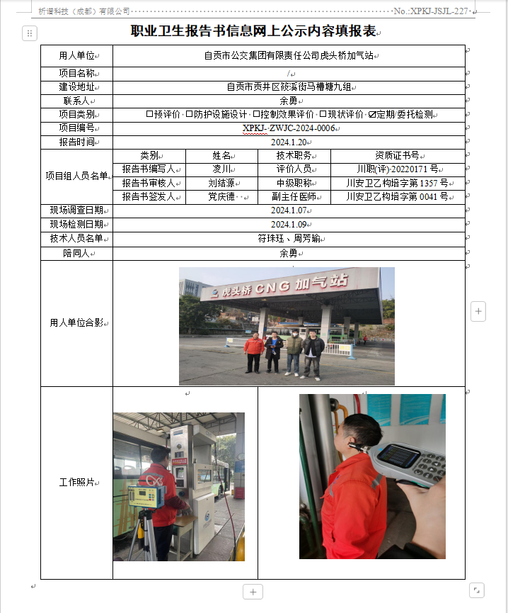 自贡市公交集团有限责任公司光大街CNG加气站 现在是:(自贡市公交集团有限责任公司露水湾加气站)定期检测