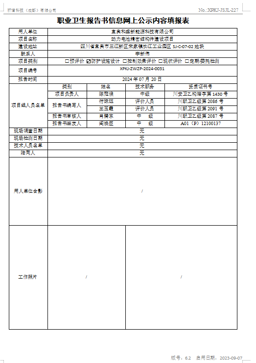 宜宾和盛新能源科技有限公司动力电池精密结构件建设项目职业病危害专篇