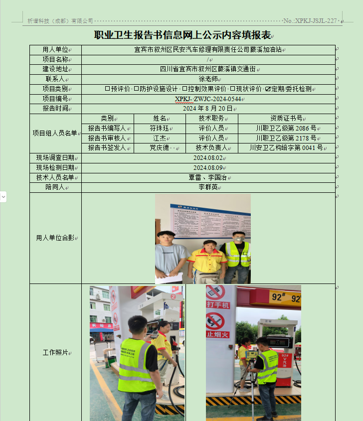 宜宾市叙州区民安车修理有限公司蕨溪加油站定期检测