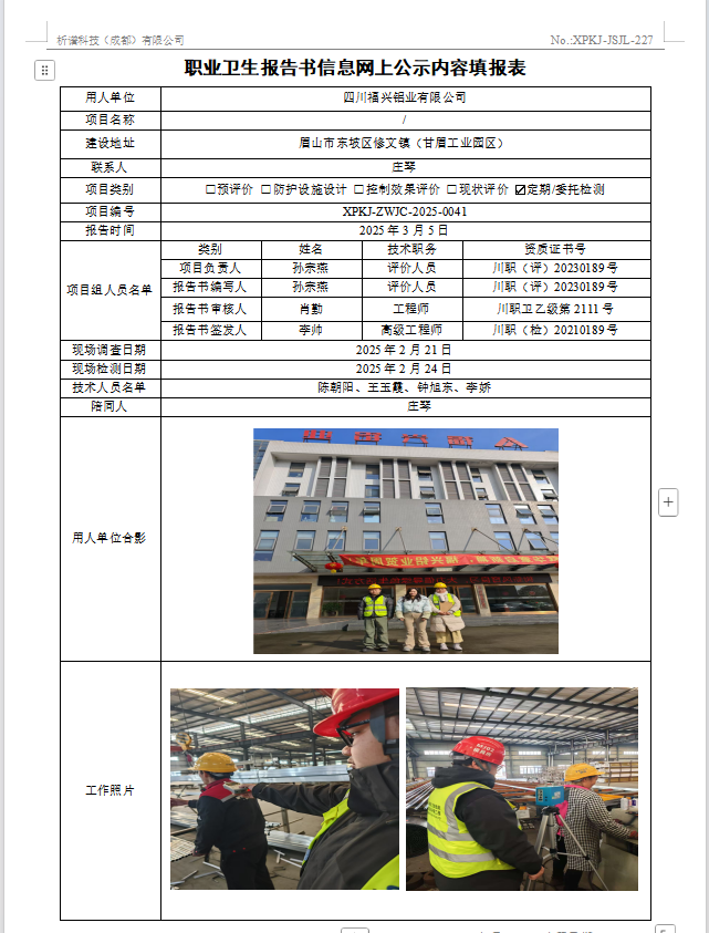 四川鸿泽电子科技有限公司职业病危害因素定期检测