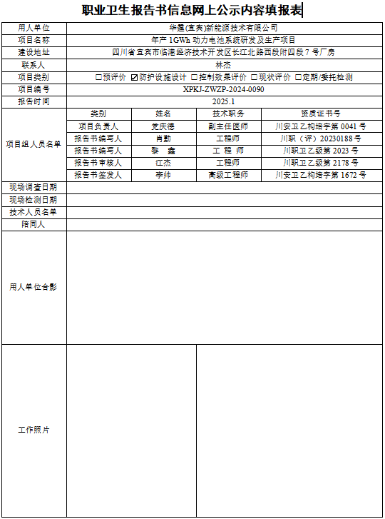 华霆(宜宾)新能源技术有限公司职业病危害因素防护设施设计专篇