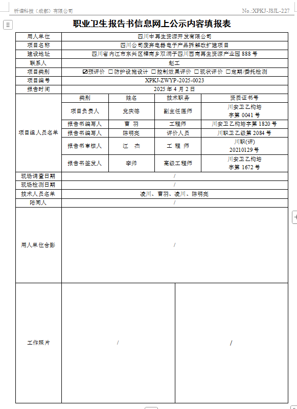 四川瑞欧盛源科技有限公司职业病危害因素控制效果评价