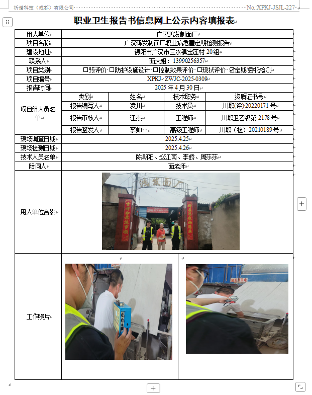 四川内江富鹏机械制造有限公司职业病危害因素定期检测